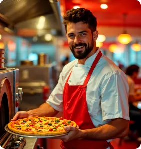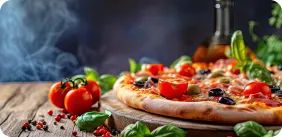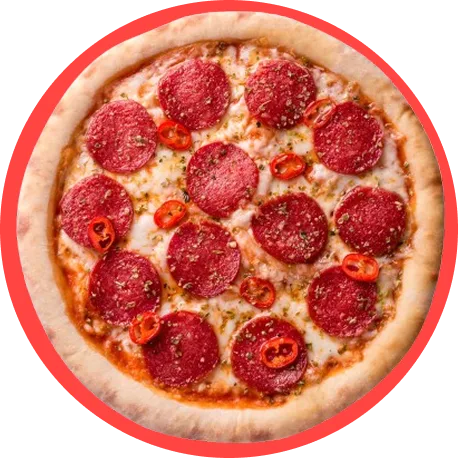 A fiery fusion of flavors! This pizza is loaded with savory sliced chicken, classic pepperoni.