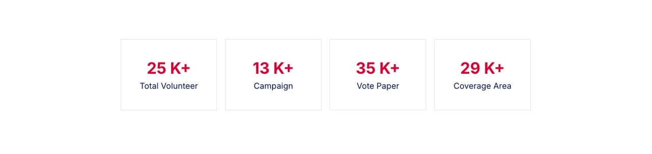 0 K+ Total Volunteer 0 K+ Campaign 0 K+ Vote Paper 0 K+ Coverage Area