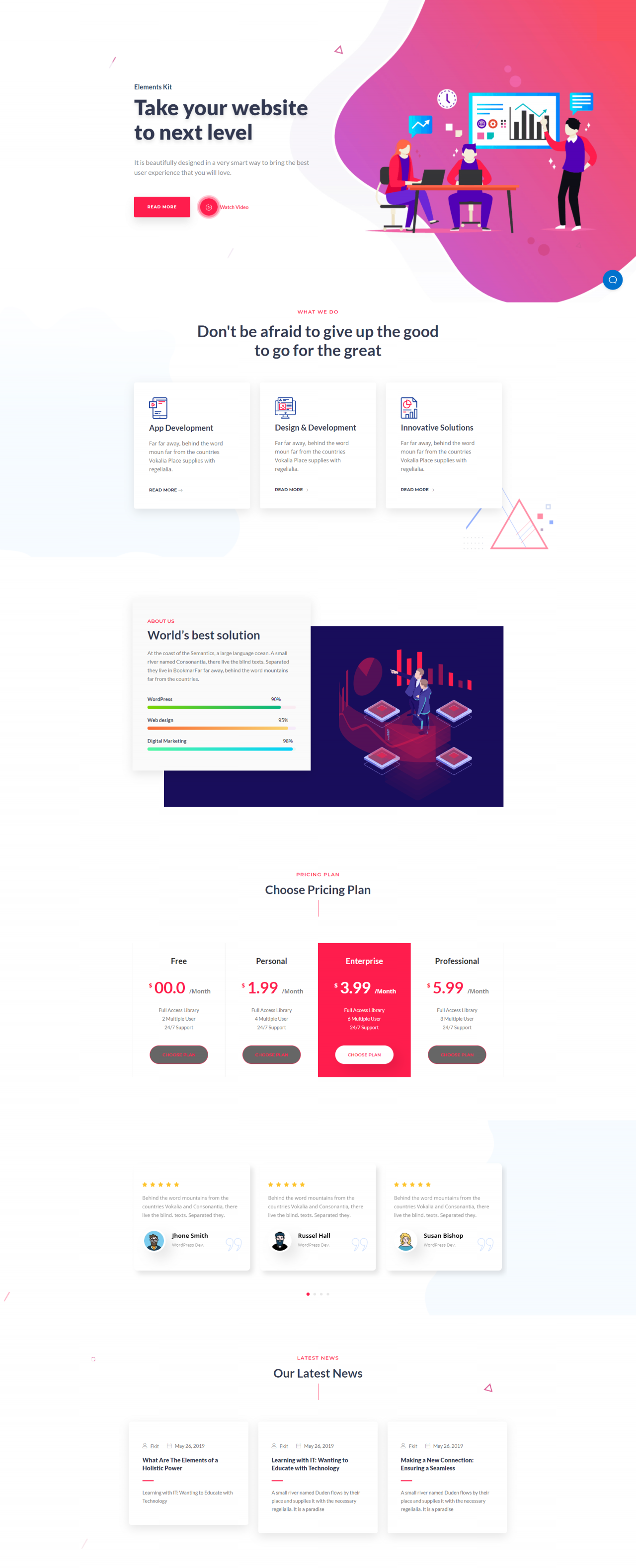Elements Kit Take your website to next level It is beautifully designed in a very smart way to bring the best user experience that you will love. Read More Watch Video WHAT WE DO Don’t be afraid to give up the good to go for the great App Development Far far away, behind the word […]