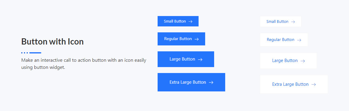 Button with Icon Make an interactive call to action button with an icon easily using button widget. Small Button Regular Button Large Button Extra Large Button Small Button Regular Button Large Button Extra Large Button