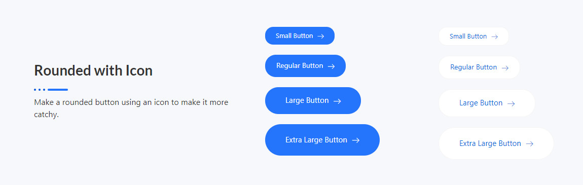 Rounded with Icon Make a rounded button using an icon to make it more catchy. Small Button Regular Button Large Button Extra Large Button Small Button Regular Button Large Button Extra Large Button