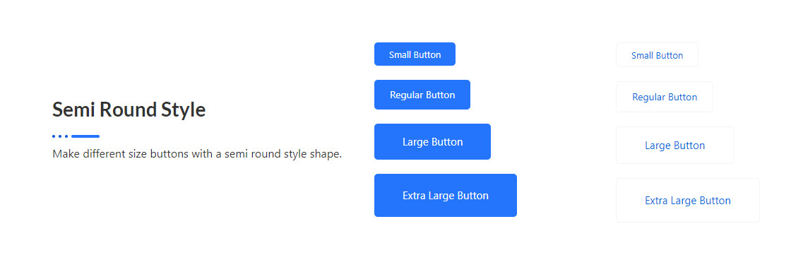 Semi Round Style Make different size buttons with a semi round style shape. Small Button Regular Button Large Button Extra Large Button Small Button Regular Button Large Button Extra Large Button