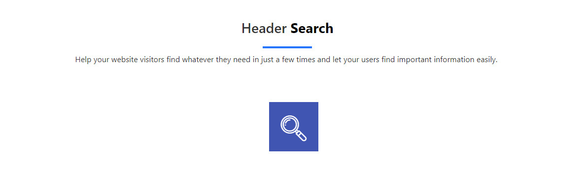 Header Search Help your website visitors find whatever they need in just a few times and let your users find important information easily.