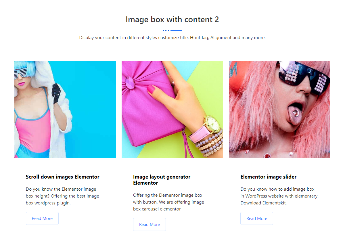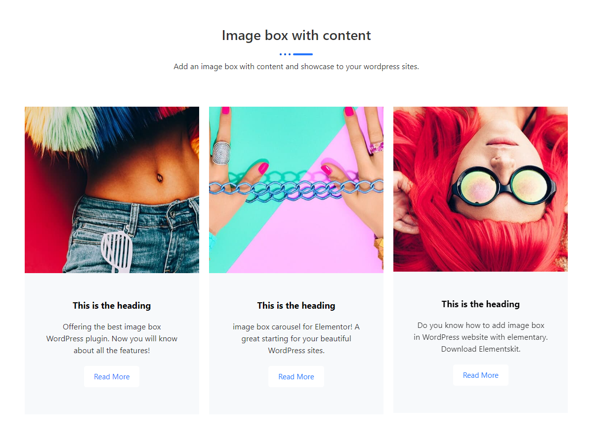 Image box with content Add an image box with content and showcase to your wordpress sites. This is the heading Offering the best image box WordPress plugin. Now you will know about all the features! Read More This is the heading image box carousel for Elementor! A great starting for your beautiful WordPress sites. Read […]