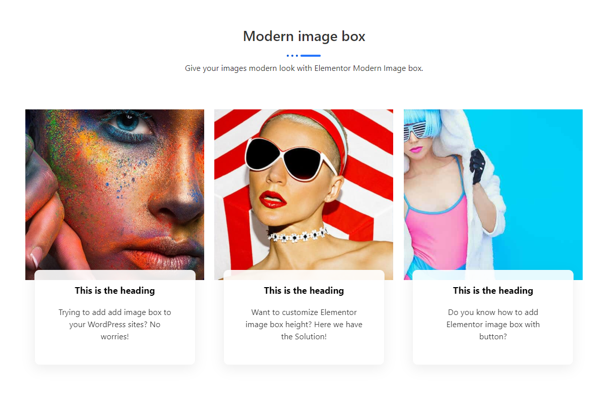 Modern image box Give your images modern look with Elementor Modern Image box. This is the heading Trying to add add image box to your WordPress sites? No worries! This is the heading Want to customize Elementor image box height? Here we have the Solution! This is the heading Do you know how to add […]
