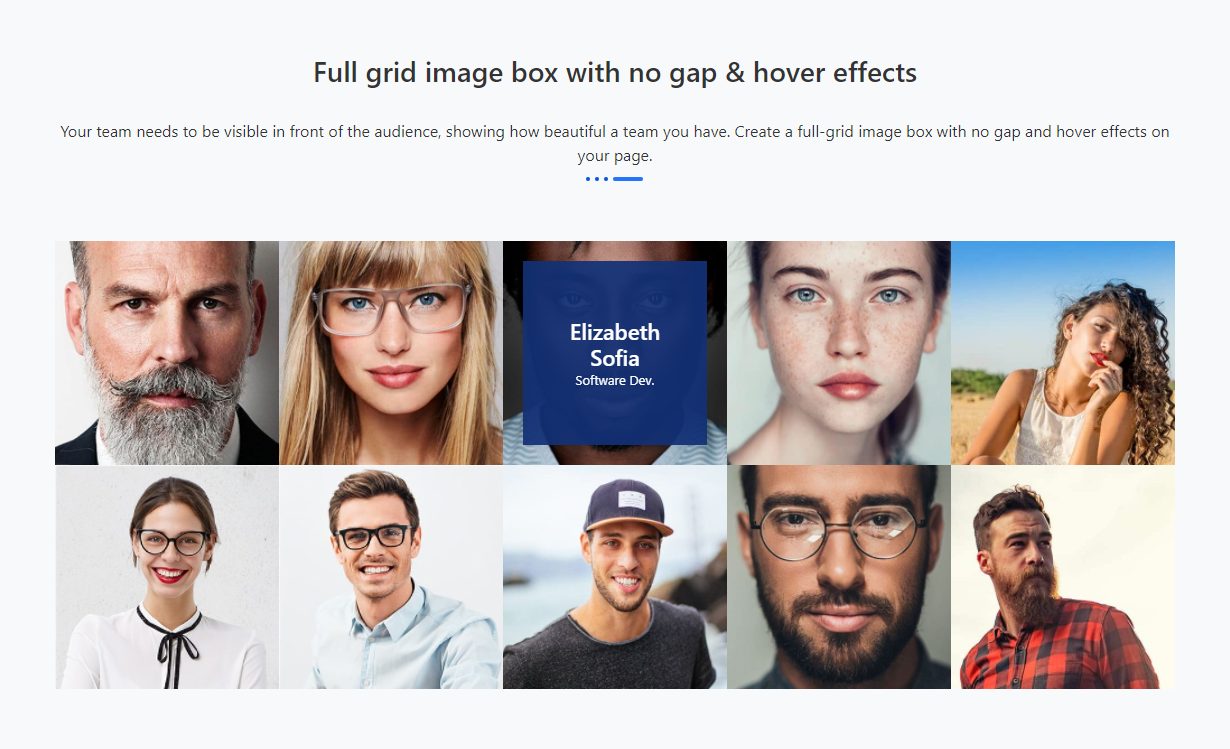Full grid image box with no gap & hover effects Your team needs to be visible in front of the audience, showing how beautiful a team you have. Create a full-grid image box with no gap and hover effects on your page. Harrison Hudson WordPress Dev. Harrison Hudson WordPress Dev. A small river named Duden […]