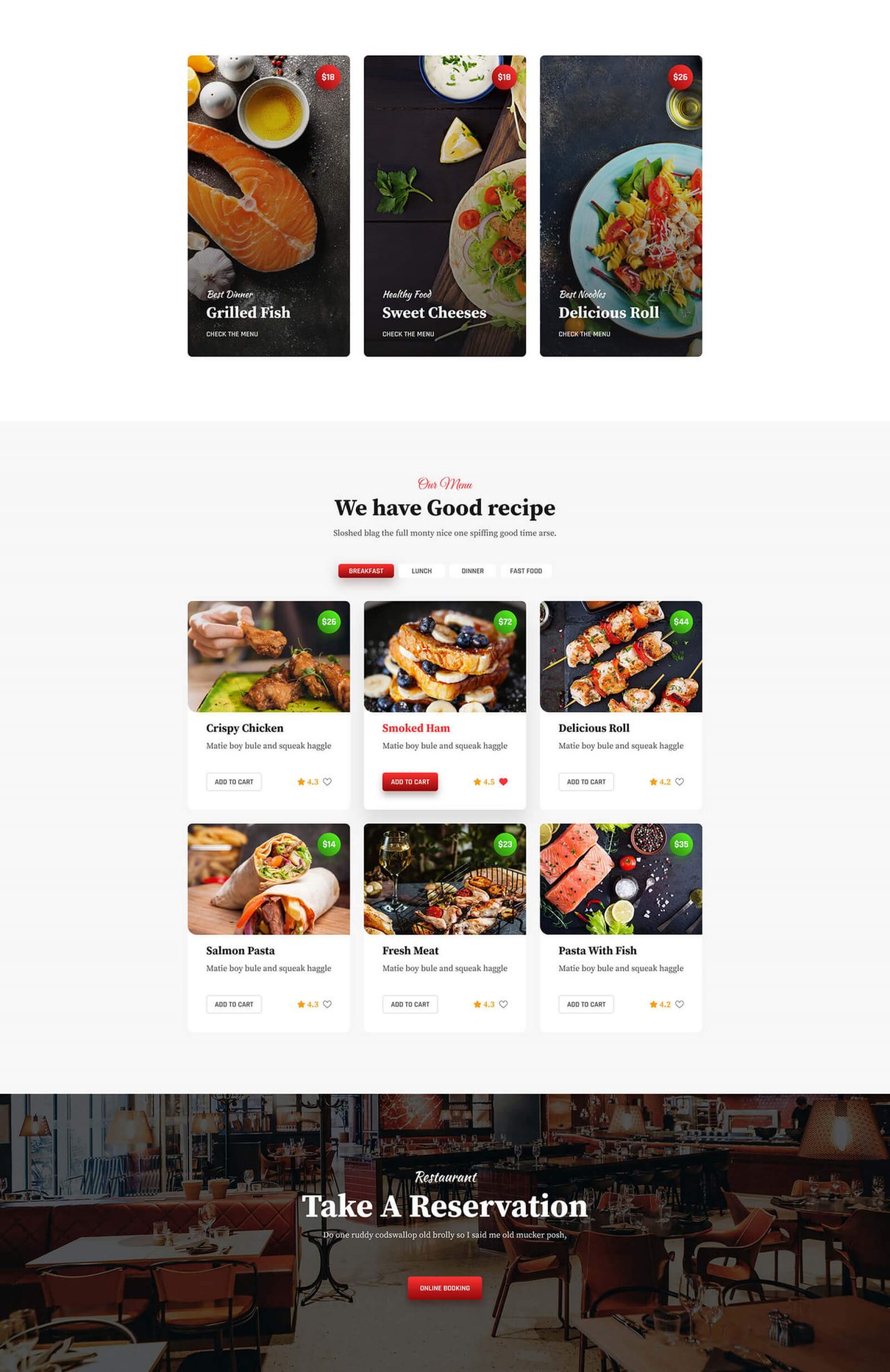 Main Menu Home Best Dinner Grilled Fish Check The Menu $18 Healthy Food Sweet Cheeses Check The Menu $18 Best Noodles Delicious Roll Check The Menu $26 Our Menu We have Good recipe Sloshed blag the full monty nice one spiffing good time arse. Breakfast Lunch Dinner Fast Food Edit Content 4.3 Crispy Chicken Matie […]