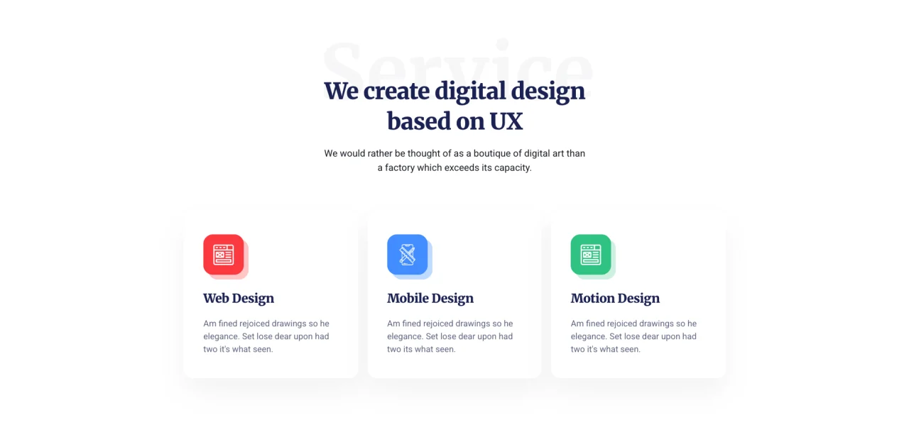 Service We create digital design based on UX We would rather be thought of as a boutique of digital art than a factory which exceeds its capacity. Web Design Am fined rejoiced drawings so he elegance. Set lose dear upon had two it’s what seen. Mobile Design Am fined rejoiced drawings so he elegance. Set […]