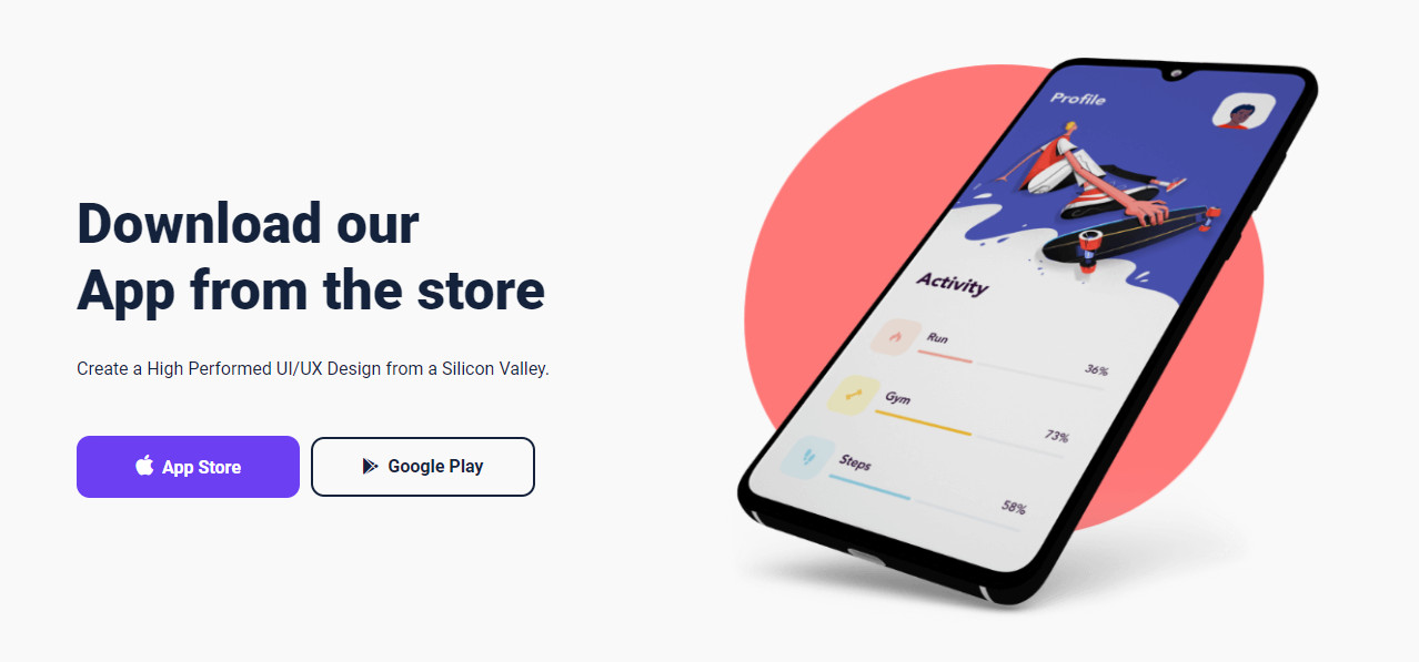 Download our App from the store Create a High Performed UI/UX Design from a Silicon Valley. App Store Google Play