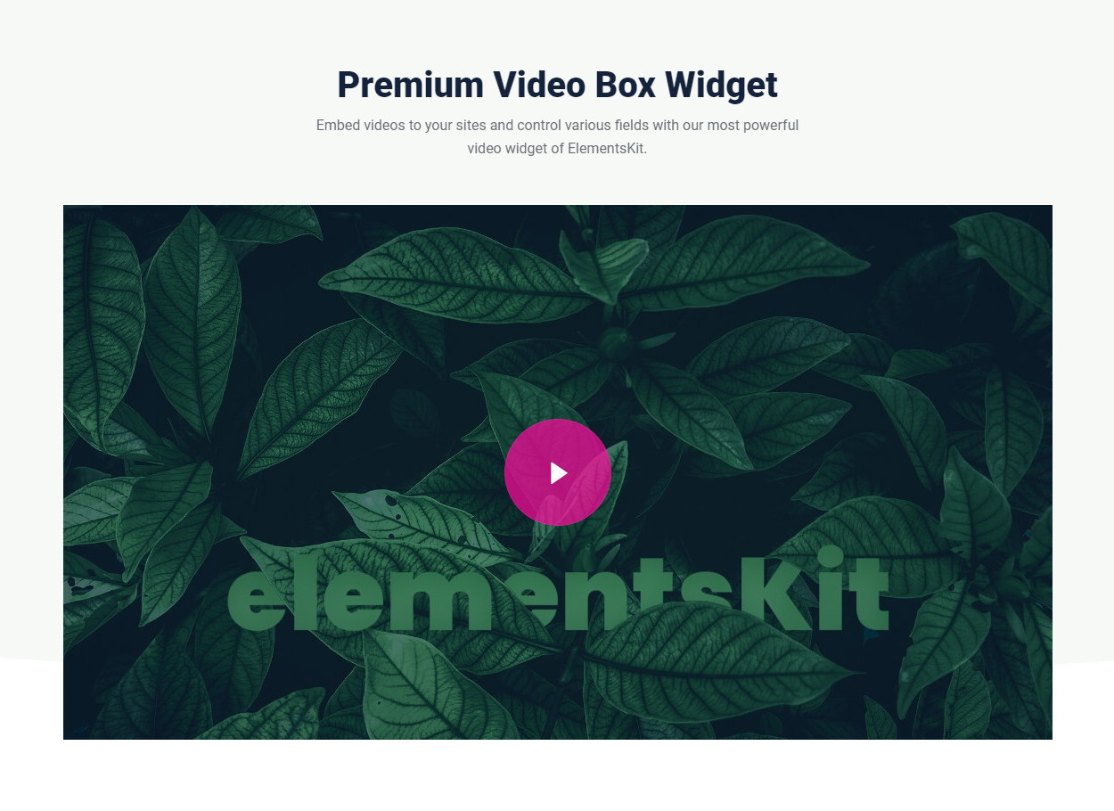 Premium Video Box Widget Embed videos to your sites and control various fields with our most powerful video widget of ElementsKit.