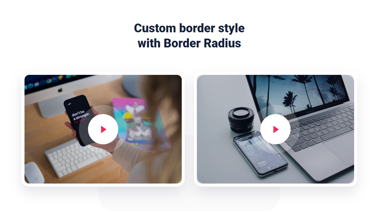 Sticky video from Self hosted Choose your border type solid, double, dotted, dashed or groove. Set width for top, right, bottom or left. In addition, select color and border radius for normal and hover style. Check Demos