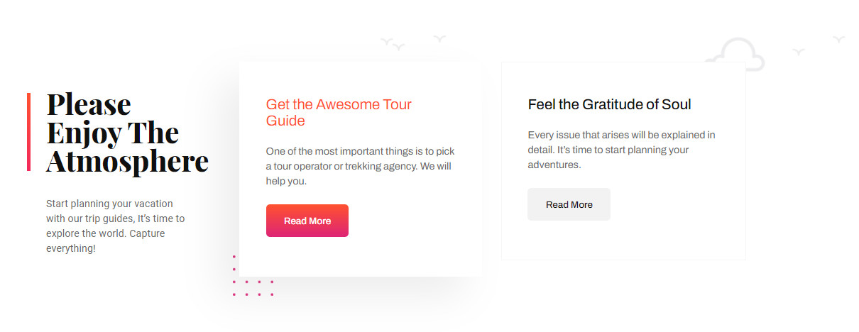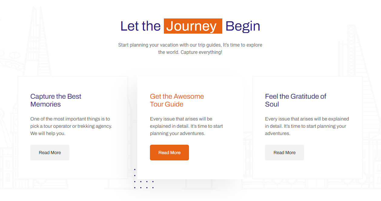 Let the Journey Begin Start planning your vacation with our trip guides, It’s time to explore the world. Capture everything! Capture the Best Memories One of the most important things is to pick a tour operator or trekking agency. We will help you. Read More Get the Awesome Tour Guide Every issue that arises will […]