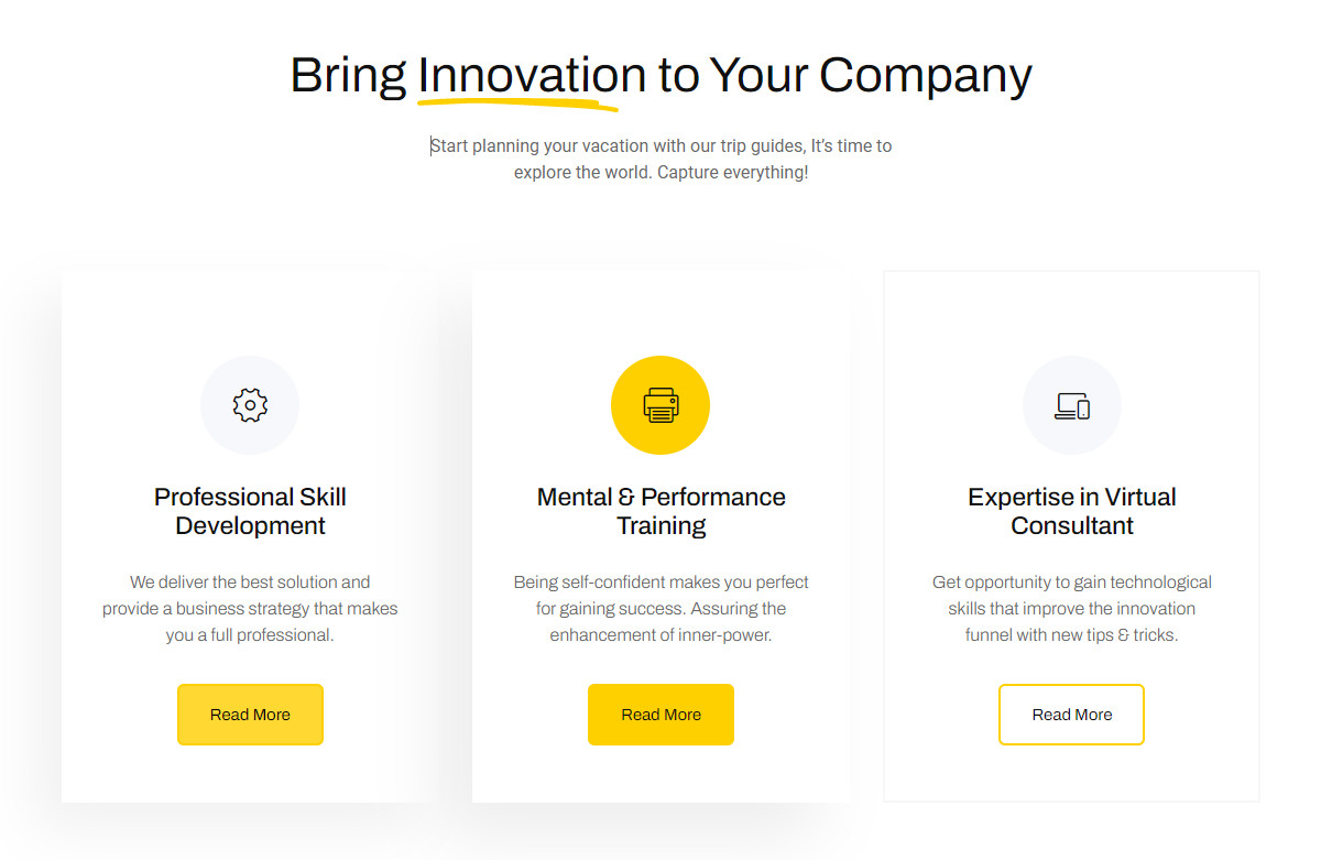 Bring Innovation to Your Company Start planning your vacation with our trip guides, It’s time to explore the world. Capture everything! Professional Skill Development We deliver the best solution and provide a business strategy that makes you a full professional. Read More Mental & Performance Training Being self-confident makes you perfect for gaining success. Assuring […]