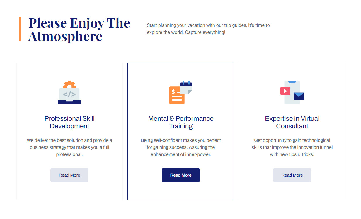 Please Enjoy The Atmosphere Start planning your vacation with our trip guides, It’s time to explore the world. Capture everything! Professional Skill Development We deliver the best solution and provide a business strategy that makes you a full professional. Read More Mental & Performance Training Being self-confident makes you perfect for gaining success. Assuring the […]