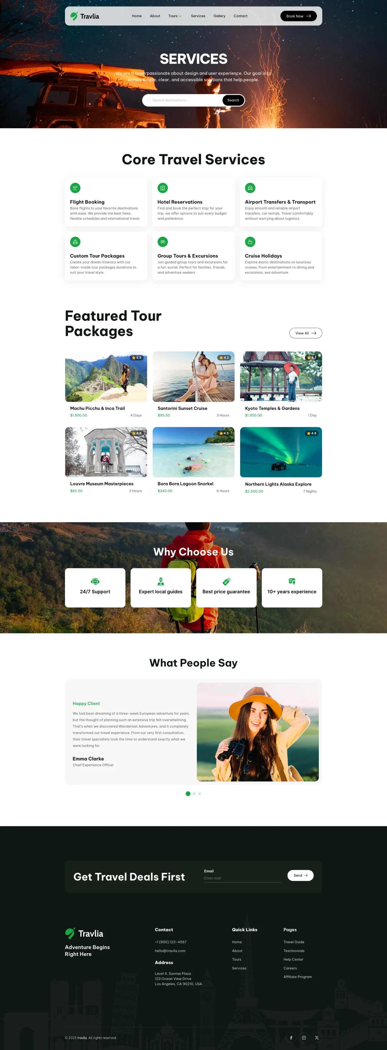 Travel & Explore We are a team passionate about design and user experience. Our goal is to create simple, clear, and accessible solutions that help people. Search Load More Core Travel Services Flight Booking Book flights to your favorite destinations with ease. We provide the best fares, flexible schedules and international travel. Hotel Reservations Find […]