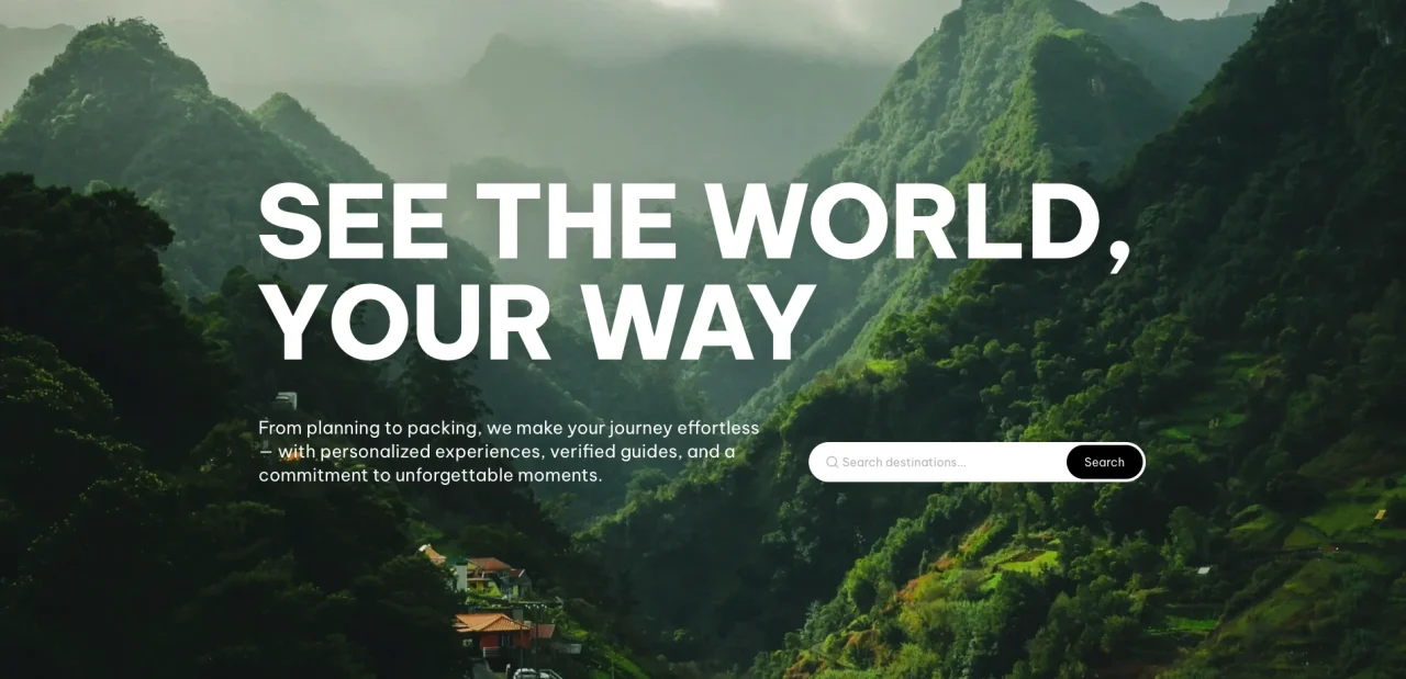 See the World, Your Way From planning to packing, we make your journey effortless — with personalized experiences, verified guides, and a commitment to unforgettable moments. Search Load More
