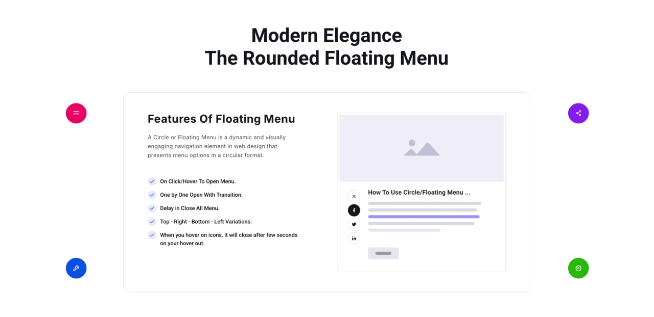 Modern Elegance The Rounded Floating Menu Home profile Services Products Contact Home profile Services Products Contact Features Of Floating Menu A Circle or Floating Menu is a dynamic and visually engaging navigation element in web design that presents menu options in a circular format. On Click/Hover To Open Menu. One by One Open With Transition. […]