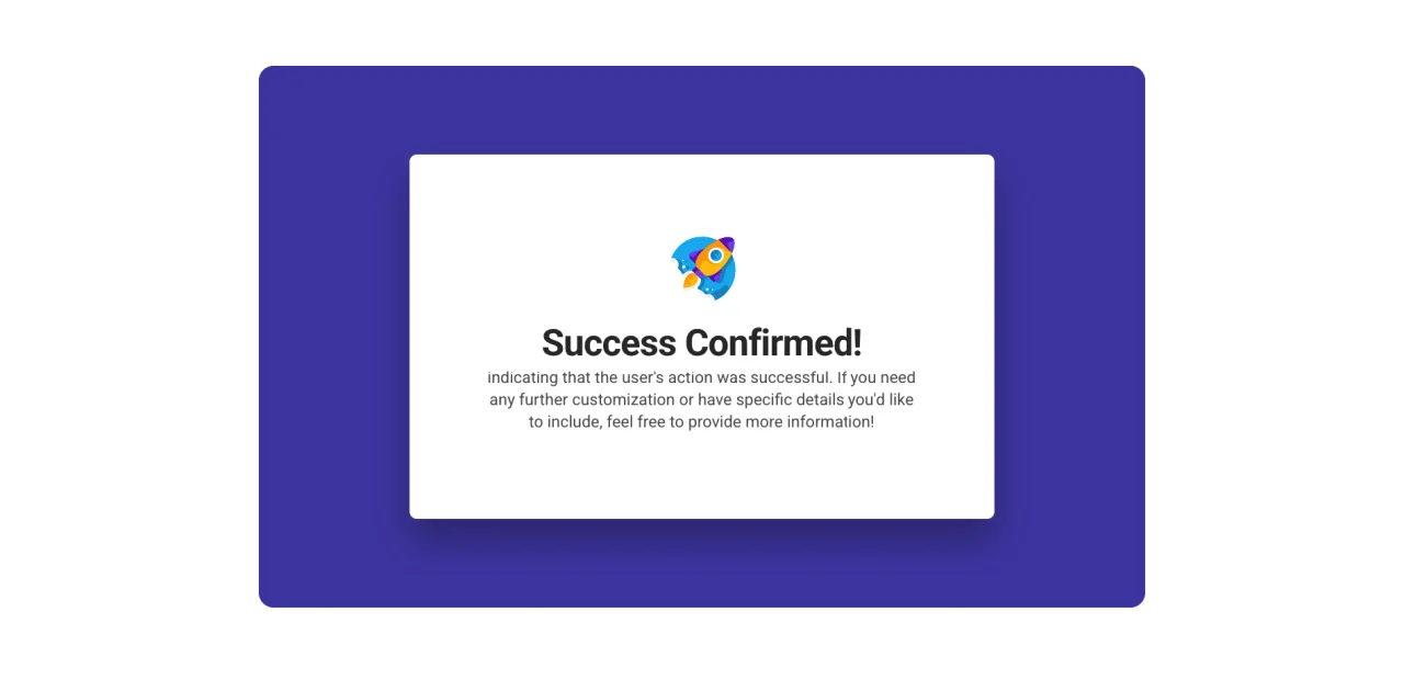 Success Confirmed! indicating that the user’s action was successful. If you need any further customization or have specific details you’d like to include, feel free to provide more information!