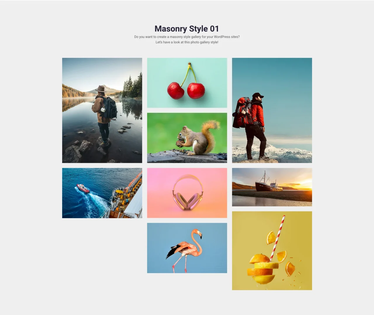 Masonry Style 01 Do you want to create a masonry style gallery for your WordPress sites? Let’s have a look at this photo gallery style!