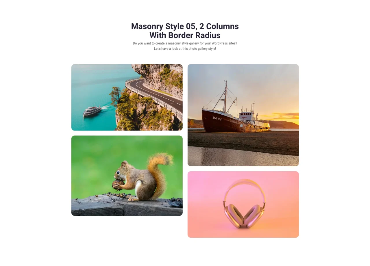 Masonry Style 05, 2 Columns With Border Radius Do you want to create a masonry style gallery for your WordPress sites? Let’s have a look at this photo gallery style!