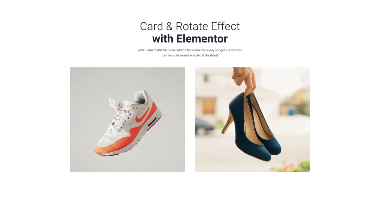 Card & Rotate Effect with Elementor With ElementsKit all-in-one add-on for elementor every widget & extension can be customized, enabled & disabled!