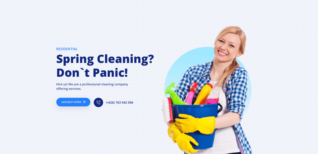 Residential Spring Cleaning? Don`t Panic! Hire us! We are a professional cleaning company offering services. Our Best offer +(426) 763 942 096