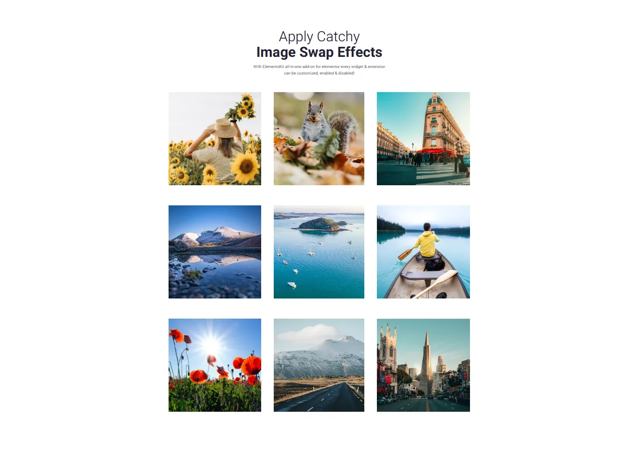 Apply Catchy Image Swap Effects With ElementsKit all-in-one add-on for elementor every widget & extension can be customized, enabled & disabled!