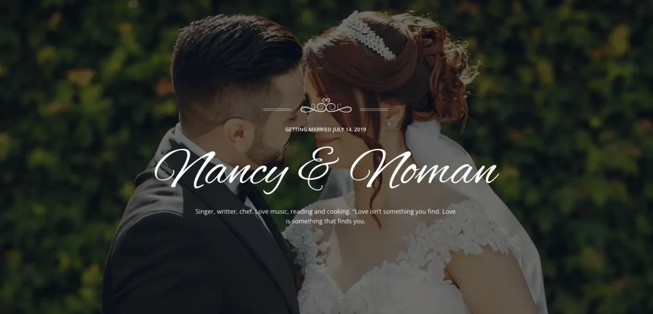 Getting Married July 14, 2019 Nancy & Noman Singer, writter, chef. Love music, reading and cooking. “Love isn’t something you find. Love is something that finds you.