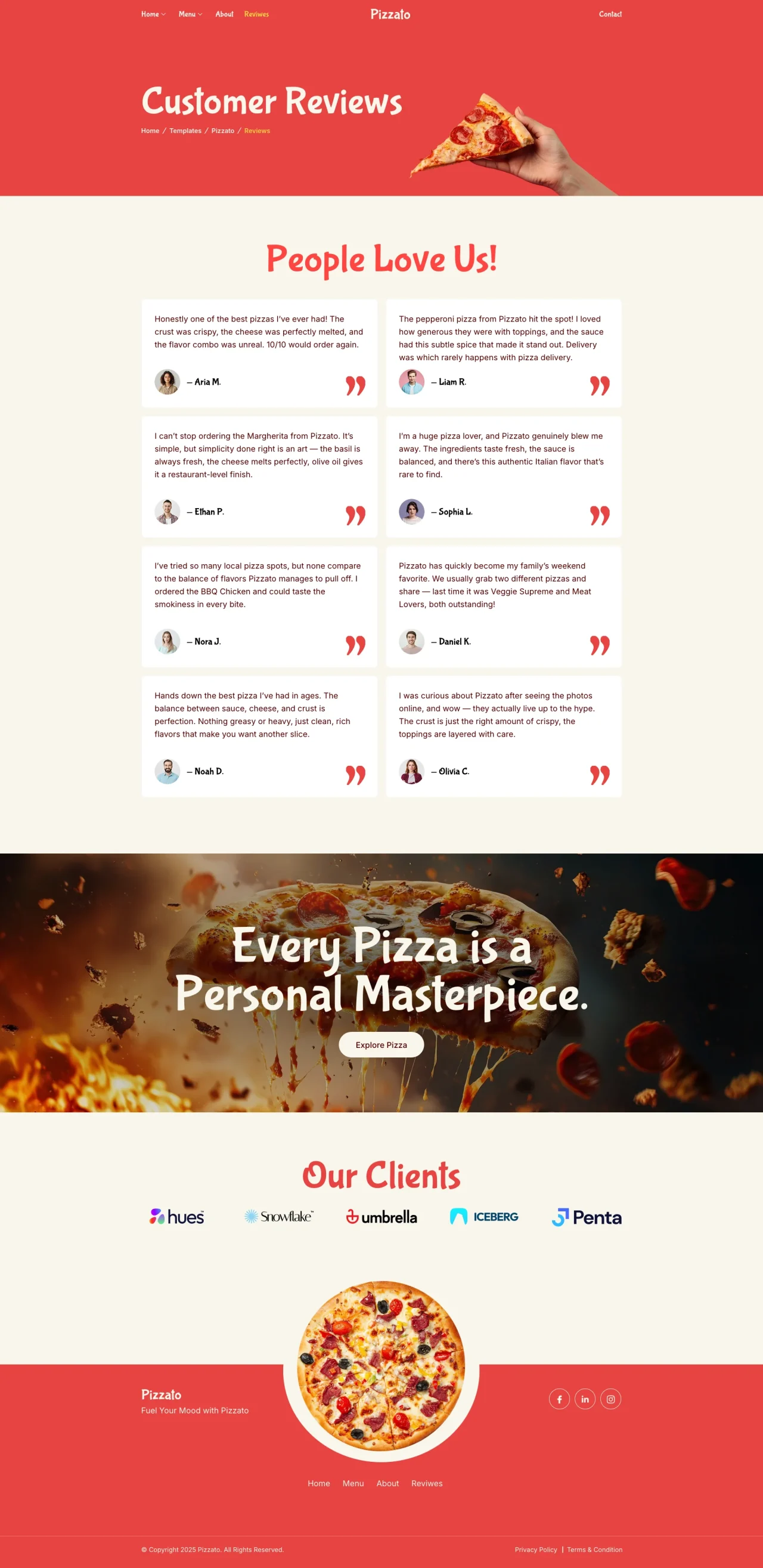 Customer Reviews Home People Love Us! Honestly one of the best pizzas I’ve ever had! The crust was crispy, the cheese was perfectly melted, and the flavor combo was unreal. 10/10 would order again. — Aria M. The pepperoni pizza from Pizzato hit the spot! I loved how generous they were with toppings, and the […]