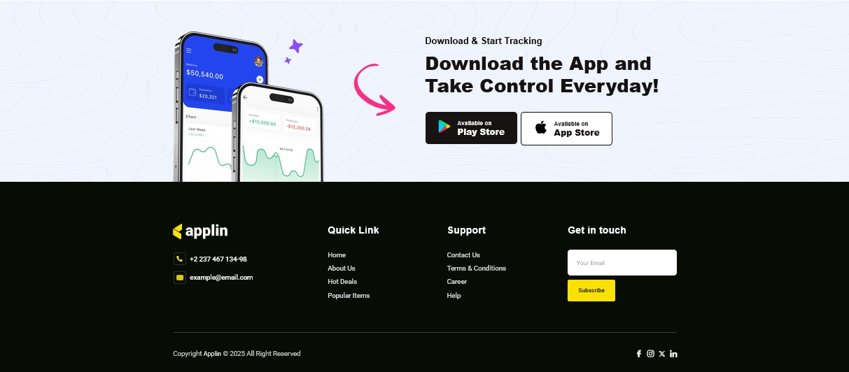 Download & Start Tracking Download the App and Take Control Everyday! Available on Play Store Available on App Store +2 237 467 134-98 [email protected] Quick Link Home About Us Hot Deals Popular Items Support Contact Us Terms & Conditions Career Help Get in touch Copyright Applin © 2025 All Right Reserved