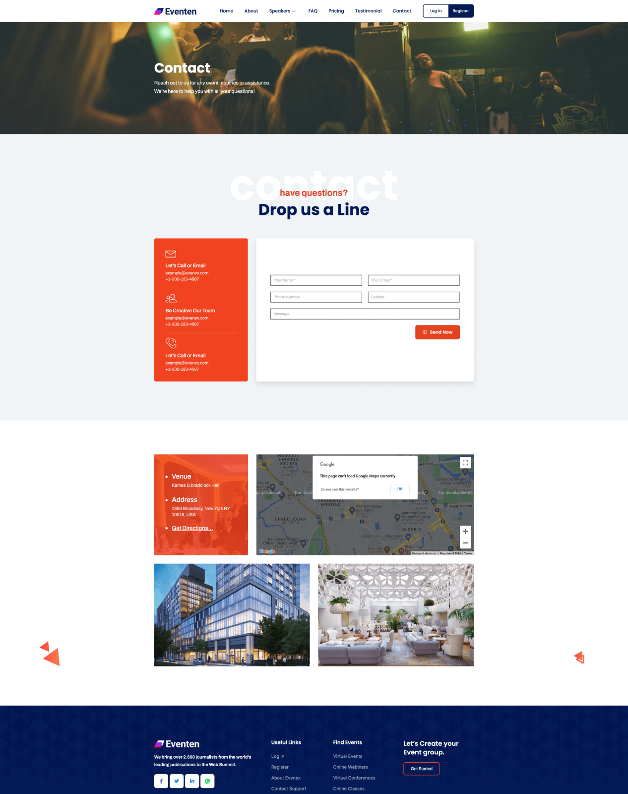 Contact Reach out to us for any event inquiries or assistance. We’re here to help you with all your questions! contact Have questions? Drop us a Line Let’s Call or Email [email protected] +1-302-123-4567 Be Creative Our Team [email protected] +1-302-123-4567 Let’s Call or Email [email protected] +1-302-123-4567 Venue Kames D.bradd ock Hall Address 1356 Broadway, New York […]