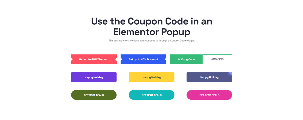 Use the Coupon Code in anElementor Popup The best way to showcase your coupons is through a Coupon Code widget. Get up to 40% Discount XS46-58XS-XS25 ElementsKit Coupon ElementsKit Coupon Code Widget To get started with a Coupon Code on-site. Copied! Copy Code Get up to 40% Discount XS46-58XS-XS25 XS16-EK18 Copy Code Happy Holiday XS456-58XS-XS25-XS55-X18 […]