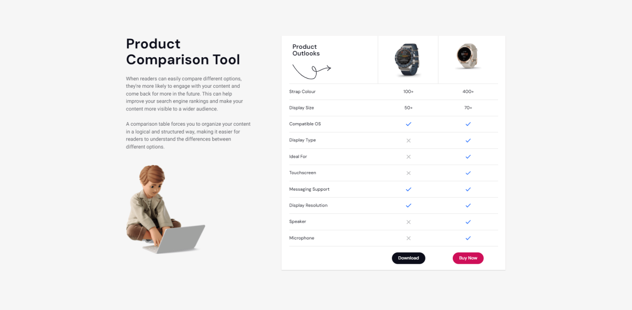 Product Comparison Tool When readers can easily compare different options, they’re more likely to engage with your content and come back for more in the future. This can help improve your search engine rankings and make your content more visible to a wider audience. A comparison table forces you to organize your content in a […]