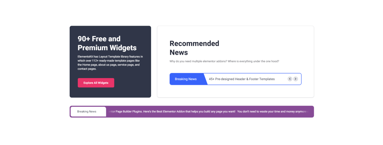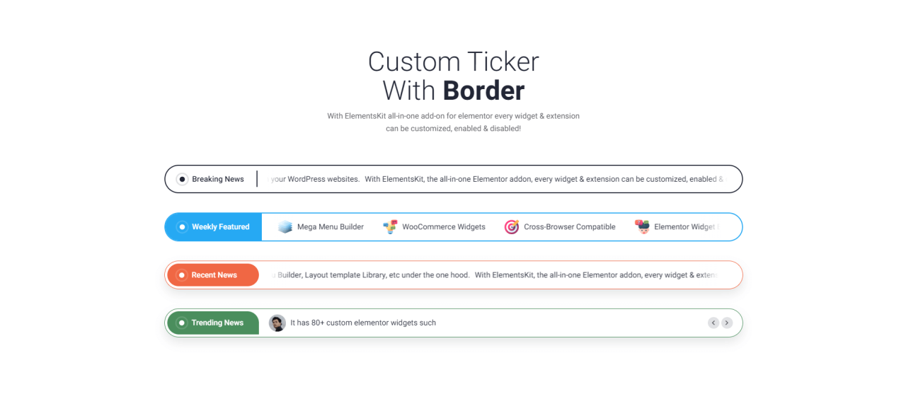 Custom Ticker With Border With ElementsKit all-in-one add-on for elementor every widget & extension can be customized, enabled & disabled! Breaking News With ElementsKit, the all-in-one Elementor addon, every widget & extension can be customized, enabled & disabled! You can also reduce the extra loading time on your WordPress websites. With ElementsKit, the all-in-one Elementor […]