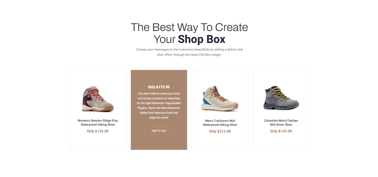 The Best Way To Create Your Shop Box Convey your messages to the customers beautifully by adding a before and after effect through the latest Flip Box widget. Women's Newton Ridge Plus Waterproof Hiking Shoe Only &126.00 Only &126.00 You don’t need to waste your time and money anymore on searching for the right Elementor […]