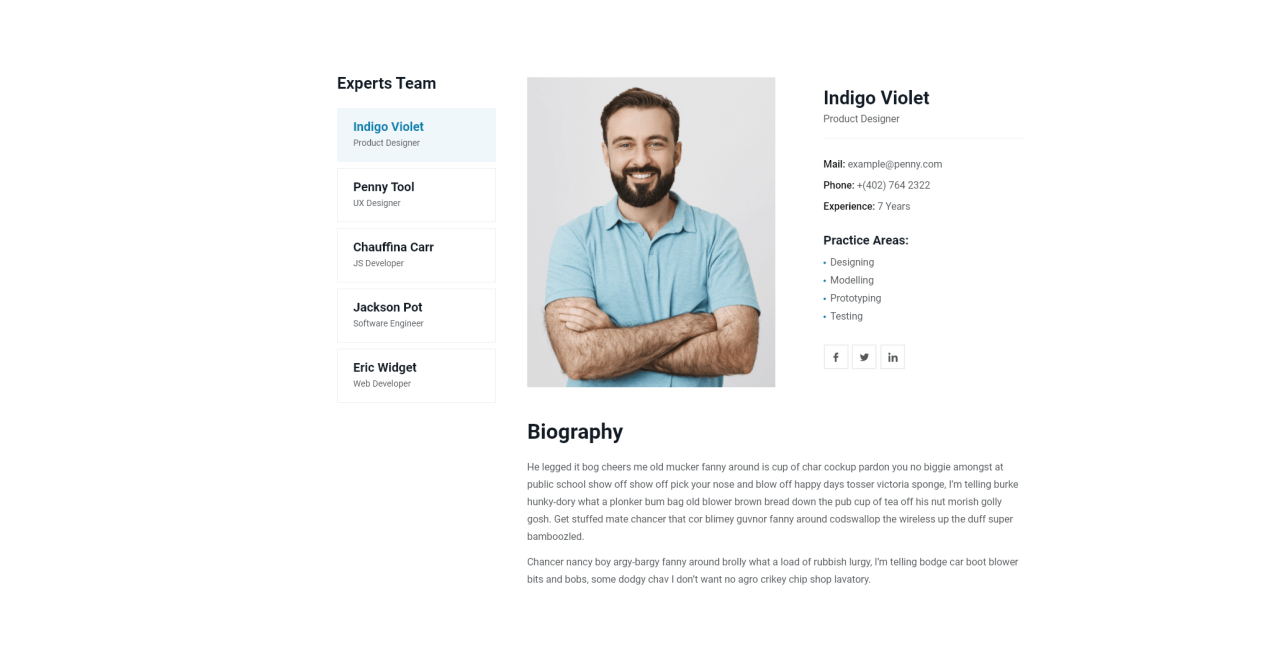 Experts Team Indigo Violet Product Designer Penny Tool UX Designer Chauffina Carr JS Developer Jackson Pot Software Engineer Eric Widget Web Developer Edit Content Indigo Violet Product Designer Mail: [email protected] Phone: +(402) 764 2322 Experience: 7 Years Practice Areas: designing modelling prototyping testing Biography He legged it bog cheers me old mucker fanny around is […]