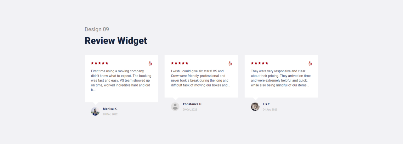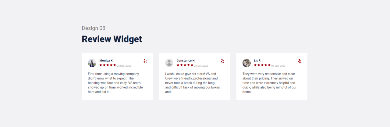 Design 07 Yelp Review with ElementsKit Kristin A. 08 Feb, 2025 Got2Move was incredibly helpful for my local Daly City move. They handled my belongings with care and were efficient. Recommend them for for a small local… Posted on Yelp Greg B. 12 Mar, 2025 VS and his team did a great job packing and […]