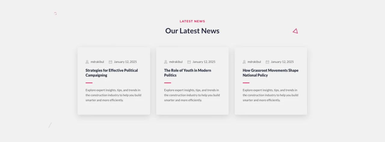 Latest News Our Latest News mdrakibul January 12, 2025 Strategies for Effective Political Campaigning Explore expert insights, tips, and trends in the construction industry to help you build smarter and more efficiently. mdrakibul January 12, 2025 The Role of Youth in Modern Politics Explore expert insights, tips, and trends in the construction industry to help […]