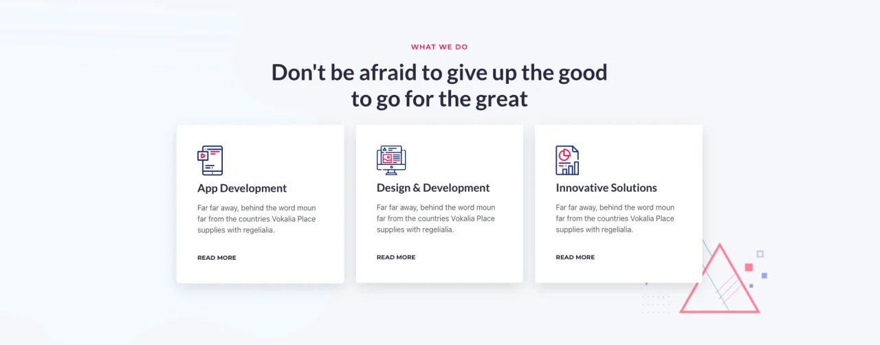 WHAT WE DO Don’t be afraid to give up the good to go for the great App Development Far far away, behind the word moun far from the countries Vokalia Place supplies with regelialia. READ MORE Design & Development Far far away, behind the word moun far from the countries Vokalia Place supplies with regelialia. […]