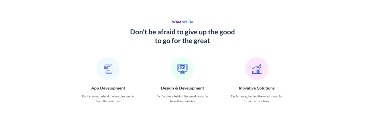 What We Do Don’t be afraid to give up the good to go for the great App Development Far far away, behind the word moun far from the countries Design & Development Far far away, behind the word moun far from the countries Inovative Solutions Far far away, behind the word moun far from the […]