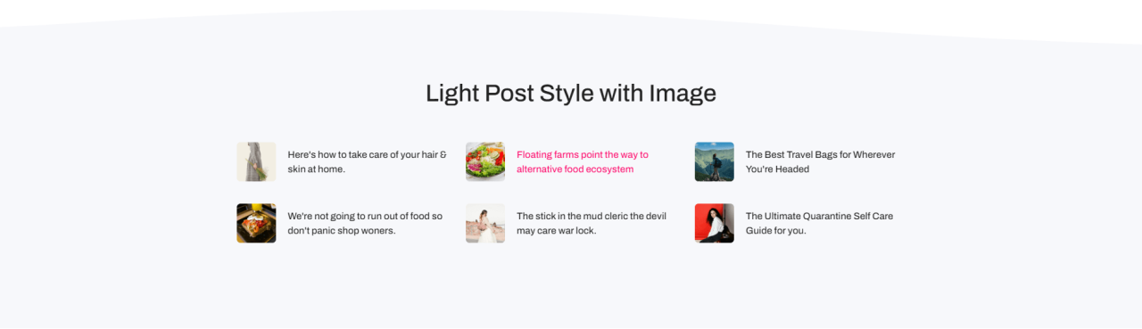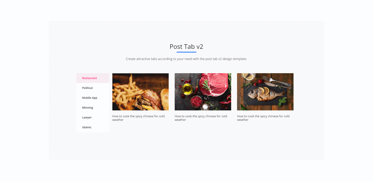 Post Tab Make an outstanding showcase of posts in tab layout using the post tabs widget for Elementor. Post List Homeless Education Corporate Law Car Law Agency Portfolio Floating Farms Point the Way to Alternative Food The stick in the mud cleric the devil may care war The Ultimate Quarantine Self-Care Guide Sharing inspiring stories […]