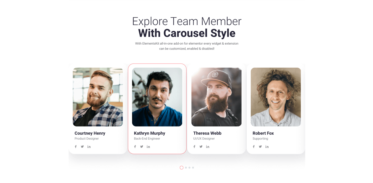 Explore Team Member With Carousel Style With ElementsKit all-in-one add-on for elementor every widget & extension can be customized, enabled & disabled! Courtney Henry Product Designer Courtney Henry Product Designer ElementsKit comes with 250+ readymade blocks. Make any website on the fly with these blocks from the exclusive layout kit library. Phone:+(423) 760 224 96 […]