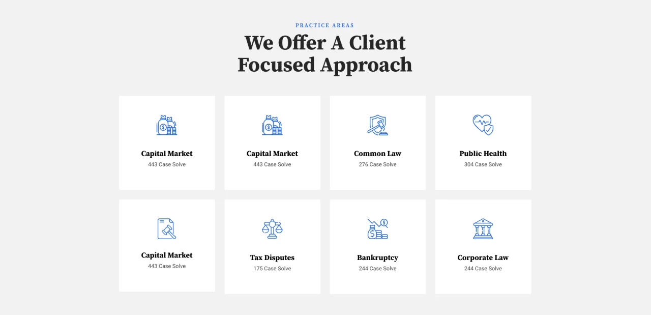 Practice Areas We Offer a Client Focused Approach Capital Market 443 Case Solve Capital Market 443 Case Solve Common Law 276 Case Solve Public Health 304 Case Solve Capital Market 443 Case Solve Tax Disputes 175 Case Solve Bankruptcy 244 Case Solve Corporate Law 244 Case Solve