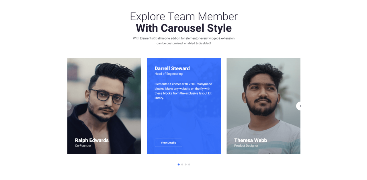 Explore Team Member With Carousel Style With ElementsKit all-in-one add-on for elementor every widget & extension can be customized, enabled & disabled! Ralph Edwards Co-Founder ElementsKit comes with 250+ readymade blocks. Make any website on the fly with these blocks from the exclusive layout kit library. View Details Ralph Edwards Co-Founder Ralph Edwards Co-Founder ElementsKit […]