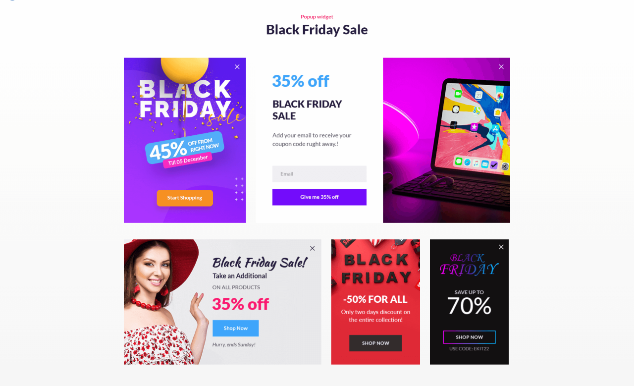 Popup widget Black Friday Sale Edit Content Start Shopping Edit Content 35% off Black Friday Sale Add your email to receive your coupon code rught away.! Edit Content Black Friday Sale! Take an Additional On all Products 35% off Shop Now Hurry, ends Sunday! Edit Content -50% for All Only two days discount on the […]