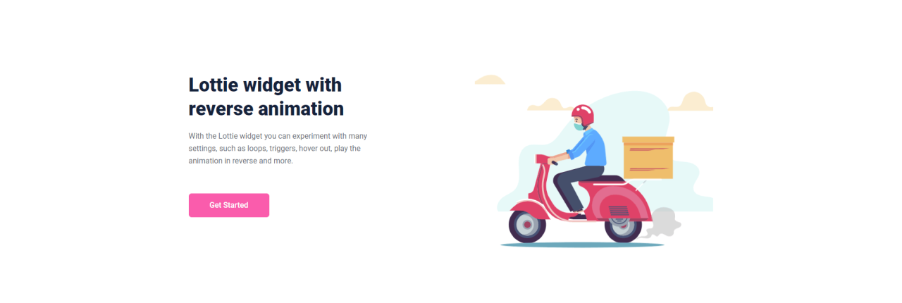 Lottie widget with reverse animation With the Lottie widget you can experiment with many settings, such as loops, triggers, hover out, play the animation in reverse and more. Get Started
