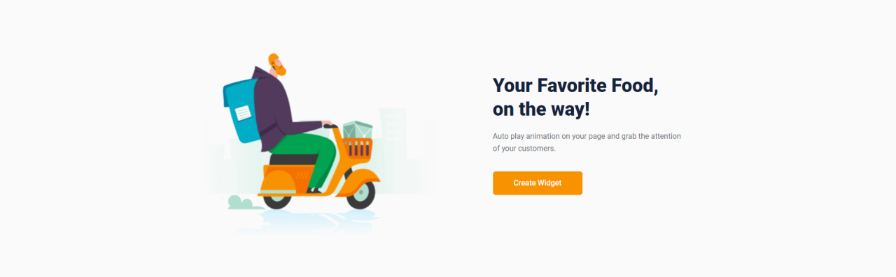 Your Favorite Food, on the way! Auto play animation on your page and grab the attention of your customers. Create Widget