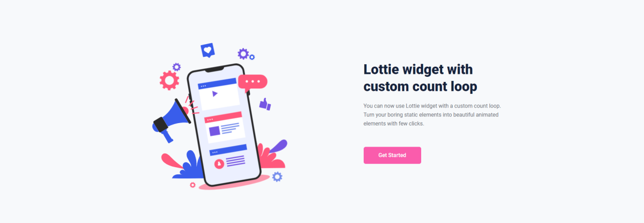 Lottie widget with custom count loop You can now use Lottie widget with a custom count loop. Turn your boring static elements into beautiful animated elements with few clicks. Get Started