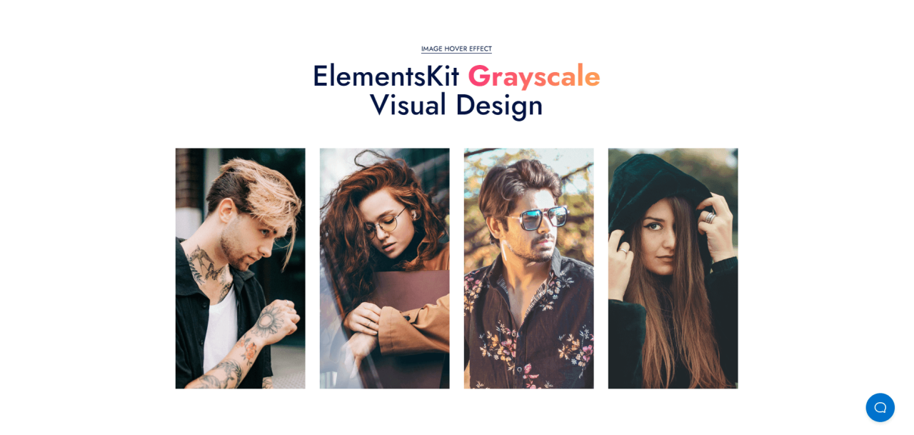 Hover Effect ElementsKit Grayscale To Color Visual Design All-in-One Addons for Elementor 100+ Widgets Professional Skill Development 250+ Widgets We’re Design Creators. 125+ Widgets Elementor Addons With ElementsKit 175+ Widgets