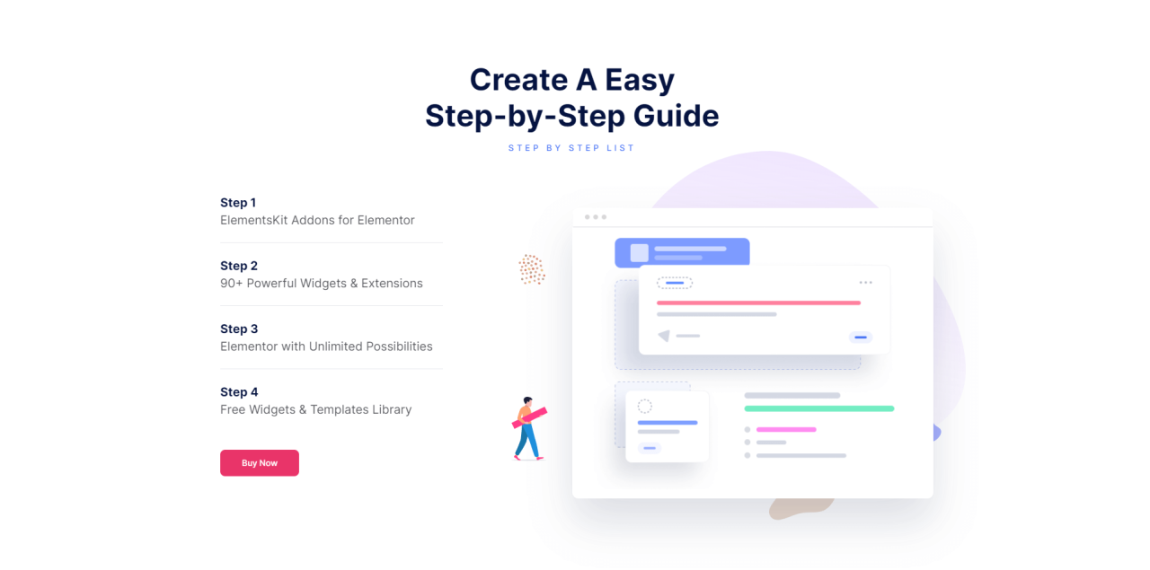 Create A Easy Step-by-Step Guide Step by Step List Step 1 ElementsKit Addons for Elementor Step 2 90+ Powerful Widgets & Extensions Step 3 Elementor with Unlimited Possibilities Step 4 Free Widgets & Templates Library Buy Now